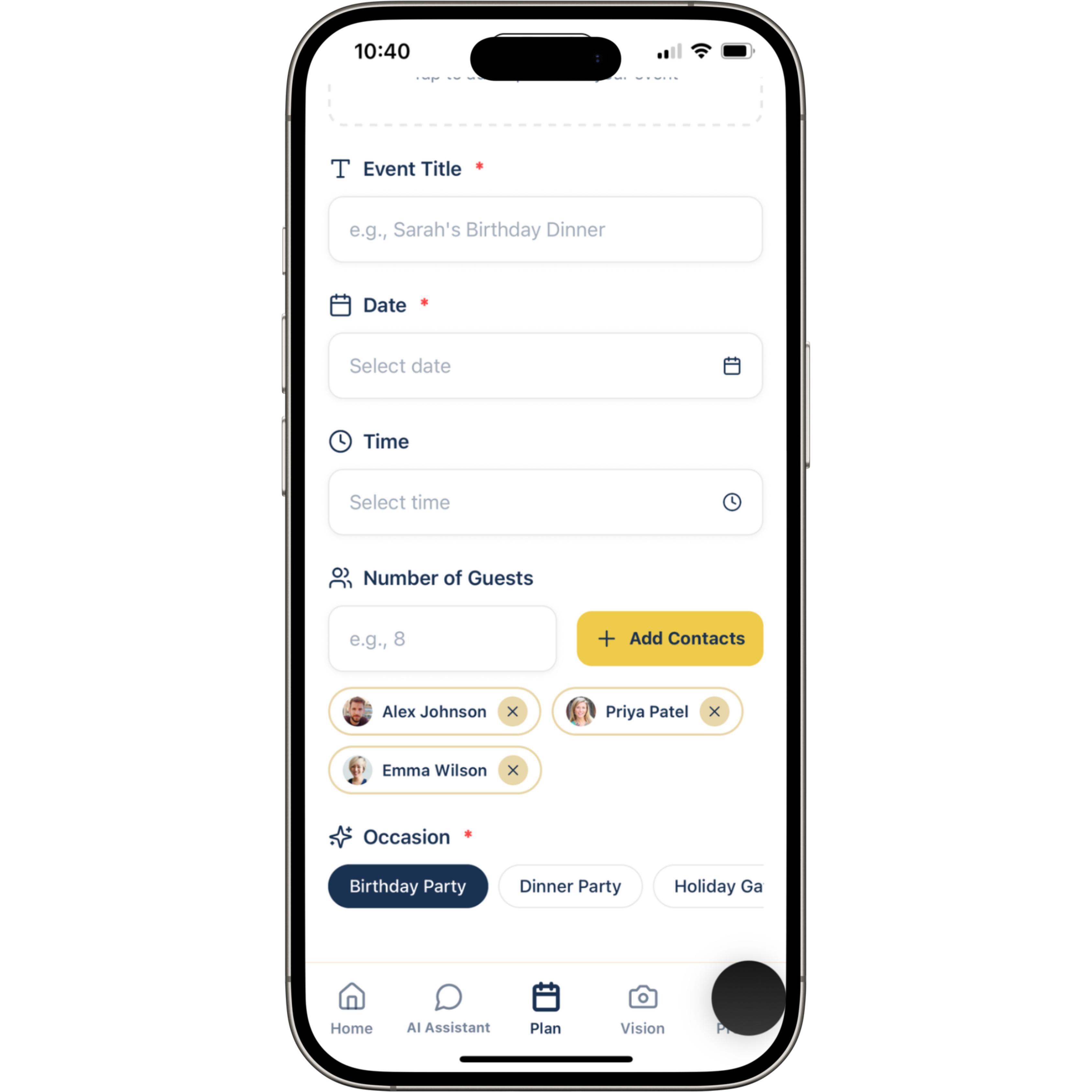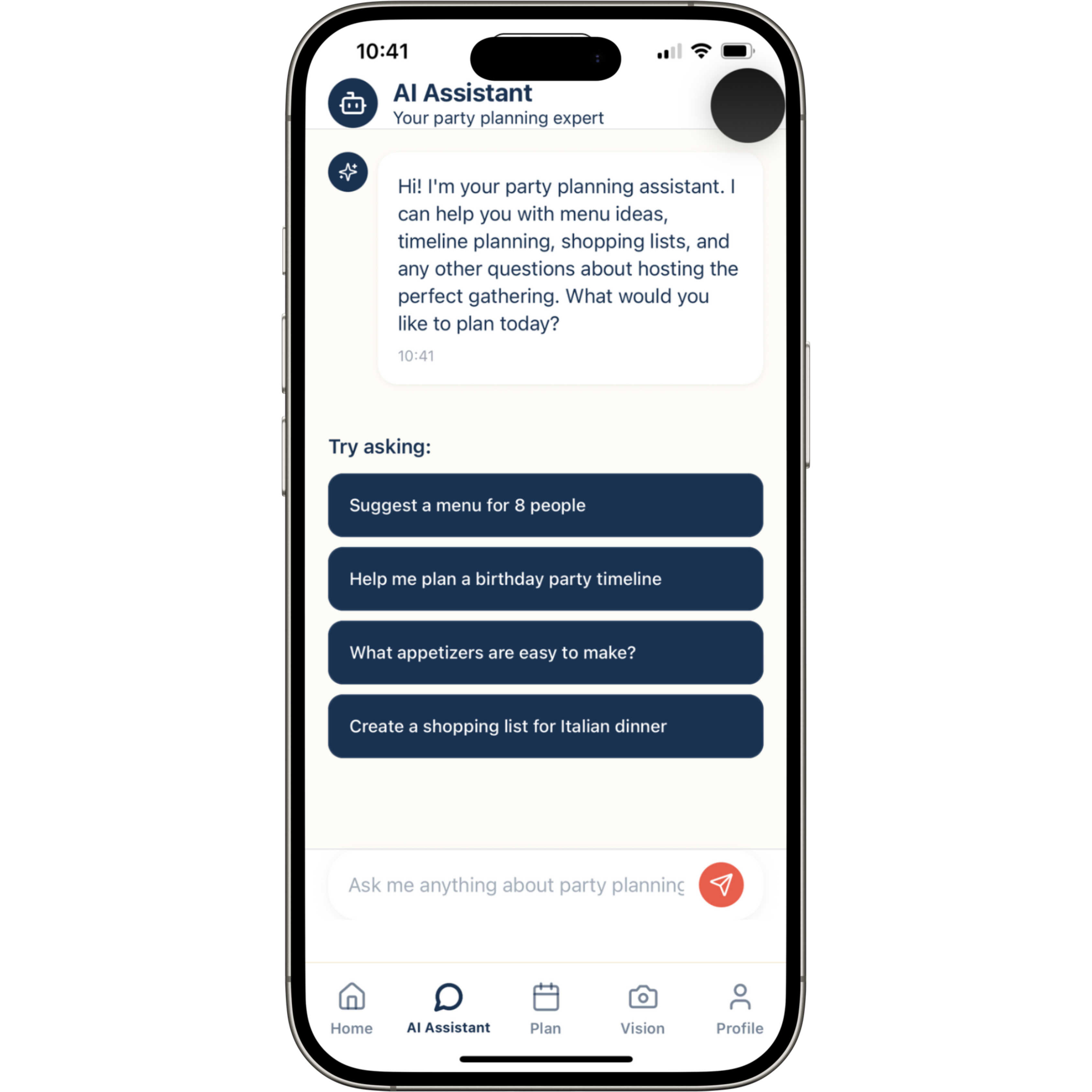 Objective: Launch a mobile MVP that helps users plan, organize, and execute home events using AI-driven guidance.